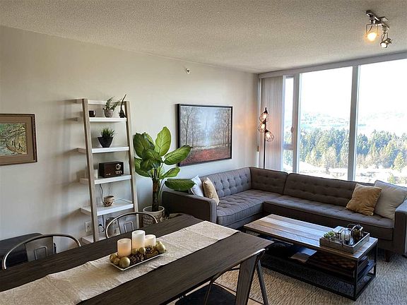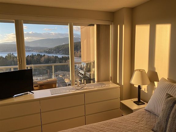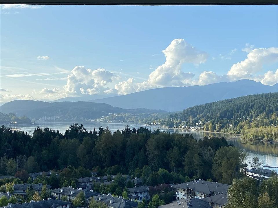 Spectacular and Breath-taking views. Featuring over height windows that extend from ceiling to the floor. Enjoy panoramic unobstructed views to the city skyline, mountains, ocean, perched overlooking the Burrard Inlet and the beautiful shoreline of Port Moody. Enjoy a beverage and visits from local hummingbirds on your oversized 17-foot balcony facing towards the mountains and ocean. Two-bedroom two-bathroom home offering sizable kitchen equipped with contemporary track lighting, stainless steel appliances and a Pantry. Two parking and a Locker! Amazing opportunity to own a home with an unobstructed view of the Pacific Ocean and snowcapped mountains. BY APPOINTMENT