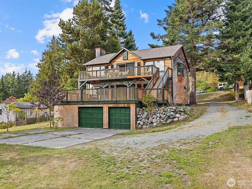 Make this one-of-a-kind 3-bed, 3-bath custom home on a half acre perched above the Sound, offering sweeping views of Crockett Lake & the Olympic Mountains your NEW HOME! Over 1,000 sq ft of multi-level decks & two full-length solarium's. Inside, rich woodwork throughout adds warmth & character, from the cedar siding to the finely crafted trim & built-ins. 2 spacious primary bedrooms w/ en-suites on the main level, 3rd bed, bonus rm, extra flex space in the basement to retreat. Large garage is setup for wood working with plenty of space for all your projects and vehicles. Whether you're enjoying peaceful mornings admiring the view, playing in the garden, this property offers a truly unique design where past charm meets future possibilities.