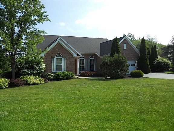 This spectacular ranch offers beautiful custom touches, 10' ceilings and beautiful hardwood floors! Gourmet kitchen opens to great room with fireplace and a view of the beautiful 9 year old in ground pool and golf course. Amazing 1st floor master suite with two walk-in closets! Backs to 8th hole of golf course, fabulous inground heated pool with patio and deck. This one will not last! Come see for yourself!