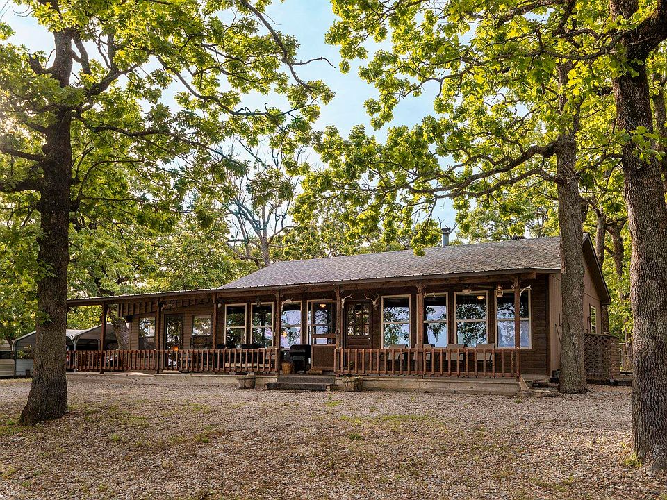 Live sustainably on this 10-acre m/l hilltop homestead with multi-mile Bull Shoals Lake views & private trail to Yocum Cove for kayaking, fishing, & swimming. The 3-bedroom, 1-bath home offers modern comforts, LVP flooring, stainless steel appliances, wood stove, mini-split, & 660 sq ft of covered porch to enjoy sunrises, wildlife & the view. A 192 sq ft studio with power & a porch is ideal for guests, an art studio or relaxing. The 3,600 sq ft organic garden features hugelkultur beds, drip irrigation, perennial herbs, numerous vegetables, fruit trees, berries & mushroom logs. A greenhouse, hoop house, & rain catchment support year-round growing. The 530-ft well with 2025 pump & multiple hydrants supplies water for garden & livestock. There is a 30x40 pole barn with concrete floor & 220v, fencing & a hunting blind. Tucked behind a private gate, low utilities & strong cell signal. Add 40-acre m/l parcel also available.