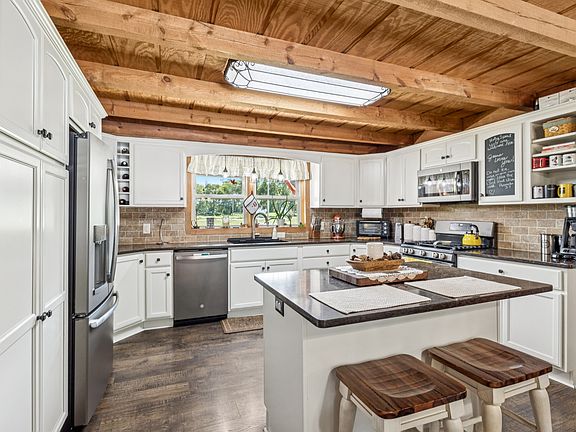 Gorgeous setting with 3 bed, 2.5 bath log home nestled on 5 acres. This is a very well maintained log home with tons of perks! Enjoy a full length porch across the front, 32x38 detached garage plus a drool worthy 40x60 workshop with 14' walls, 200 amp service, polyasparatic coated floor, 400 sqft area has 6" thick concrete, there are (2) 10x10 doors, a 10x12 door, and a wood stove. Like new in-ground salt-water pool, updated kitchen and primary bathroom, updated flooring, well maintained paved drive, inground storm shelter, newer roof, RV electric hook up and a second perk site. Motivated seller is offering up to $10,000 towards buyers closing costs with acceptable offer. Owner has kept meticulous maintenance records and all you have to do is move in to start enjoying privacy that is also super convenient to the city. All equipment and systems in the home have been improved or replaced. See the home improvement list in photos. Loft (rec room) and office with half bathroom on second floor. Gas cooktop in kitchen and tankless gas hot water heater.