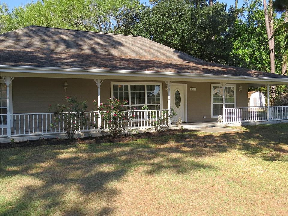 Escape to your quiet lake house oasis in sought after Governors Point community. This beautiful custom-built home offers the perfect open concept floorplan for entertaining & gathering. This 3-bedroom/2-bath home features 2x6 walls for superior insulation, high ceilings, oversized kitchen with a huge breakfast bar, custom cabinets with pull outs, custom living room built-ins, large, covered front & back porches with a canal view, fishing pier, new paint, carpet, outdoor lighting and porch ceiling fans, no attic water lines. This home also boasts a 500-sf garage apartment! Home is being sold with w/d and refrigerators included. It is situated on a huge .9309-acre (4 lots) lot with RV pad and boat parking. Come live the lake life and enjoy all the pleasures of a peaceful sanctuary, abundant wildlife, gorgeous sunrises and sunsets, low tax rates, low HOA dues.