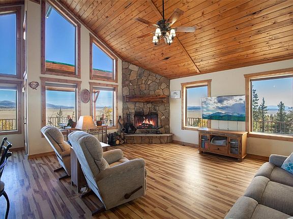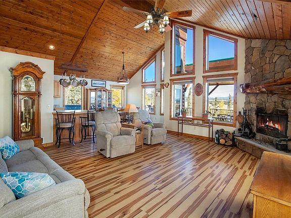 Motivated Seller! Panoramic mtn views bordering 93+ ac of open space & Nat'l Forest. Inviting primary suite w/ sweeping views, 5 piece bath & walk-in closet! Hickory cabinets, granite counters, breakfast bar, T&G vaulted ceiling, wood burning fireplace, knotty pine doors, on-demand hot H2O heater & more! Capture true mtn living on the partially covered wraparound deck w/ new iron railing. Enjoy your private hot tub, large shed, OS 2 car finished garage, paved driveway, metal roof w/ snow stops!