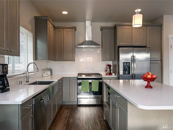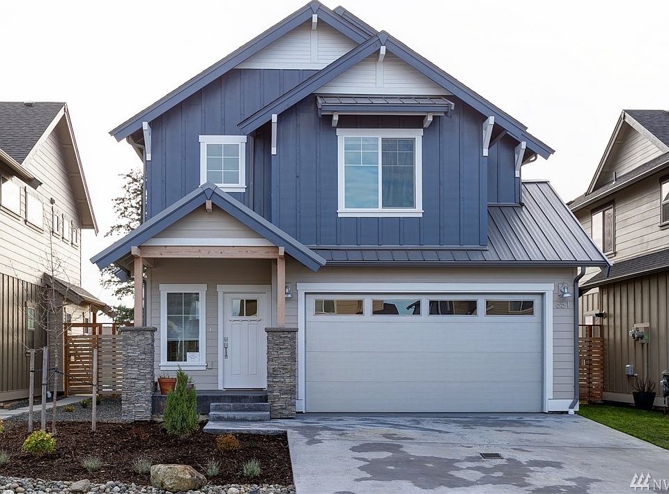 Welcome home to Bellingham's premiere solar and energy efficient community! This Northwest contemporary craftsman home features a custom designed kitchen with soft closed cabinet doors, farmhouse sinks, quartz countertops, ship-lap surround fireplace, mini-split heat pump, a free standing tub in the Master suite's bathroom, walk in closet, metal accent roofing, and solid wood beam framed porches. The home qualifies for the WSU energy program/ PSE solar panel incentives program.