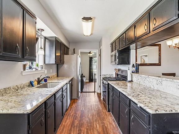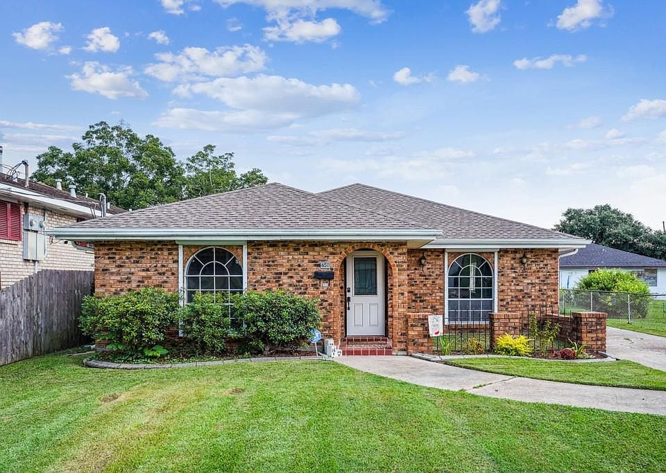 OPEN HOUSE Sunday 10/5 at 1130am-1pm come grab lunch and check out this beauty HOME QUALIFIES FOR 100% Financing!!! Just in time to be HOME FOR THE HOLIDAYS~ ALL brick~ REAR YARD ACCESS~ Double car garage. ROOF 2025 Open & airy, lots of natural light. Large den adjoins dining room that can be used as play space or office. The updated kitchen features rustic plank floors, stainless appl, granite counters, hi-top breakfast bar & eat-in dining area. Spacious 3 brms, 2 full baths updated counters & vanities in both baths. Bonuses: extended driveway to garage workshop, back patio overlooks lush backyard. Quiet street, easy access to Westbank Expy, Huey P Long Bridge and WB's popular pizza joint, Mo's Pizza is just a vacant lot over. New flooring throughout. No carpet. Come take a look for yourself.
