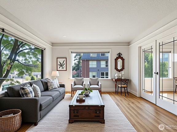 North Queen Anne is the right location for your next home! Conveniently located next to the SPU campus and in close proximity to the South Ship Canal Trail, upper QA, Fremont, Interbay and South Lake Union. Nearby shops and restaurants will delight as you explore the options. This 4-bedroom home is a great investment property or primary residence. Creative energy will add value – renovate kitchen & bathrooms for easy equity. The lower level has a separate entrance and works well as guest quarters or potential ADU. Original details include hardwoods, French doors, a generous dining room and wood-burning fireplace. The pleasant back yard features fruit trees and covered patio. Corner lot zoned LR1.  One-car garage + off-street parking.
