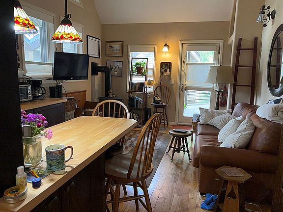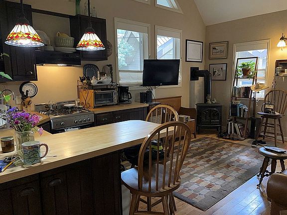 Inside, you'll find vaulted ceilings, rich hardwood flooring, a cozy gas fireplace, and a bright, open-concept layout. The updated kitchen with new freezer, features butcher block countertops and stylish finishes. A flexible bonus area is ideal for a home office or reading nook, and the generous 15' x 20' attic loft provides valuable storage space perfect for seasonal gear, loft or owner lock-off.