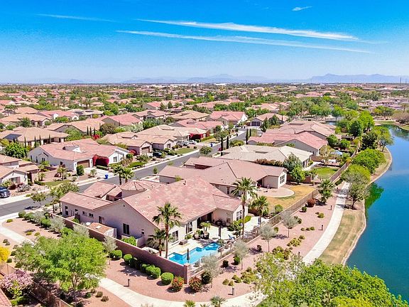 Gorgeous WATER VIEW home in Fulton Ranch on 1/4+ Acre Lot! Stunning Semi-Custom home with 3-way SPLIT floor plan with 5 Bedrooms & 4.5 Baths. TWO MASTERS; Main oversized Master features custom closet built-ins plus hook-ups for stackable laundry & door to patio/backyard. Oasis backyard with Pool, Spa, built-in BBQ, travertine patio, fire pit & fire pots that create ambiance framing the Lake View, Garden Planting Beds, Dog Run with access to Bonus Room, updated FX landscape lighting front/back & WATERFRONT VIEWS! GOURMET Kitchen with GE Monogram stainless appliances, gas range, multiple ovens, refrigerator & Sonic-style Scotsman ice maker! Gorgeous wood cabinetry throughout home including plantation shutters & hand scraped wood floors in Great Room, bedrooms & Gam Room. Game Room has built-in desks and floor to ceiling mirrors creating a dance studio. Be sure to check out the two bedrooms with custom built-in beds and shelving! Every bedroom has access to a bathroom nearby! Interior amenities: Central Vacuum System, 8-foot interior doors & surround sound throughout home including garage & back patio. STORAGE GALORE includes built-in cabinets in single garage, overhead bin storage in double-car garage! And, there is an outside storage shed too! Inside storage is abundant with walk-in linen closets, walk-in pantry and plenty of cabinets and built-ins! RV gate is electronically controlled with pavers leading out to the front driveway. Newer garage springs and new 75 gallon water heater in March 2022.