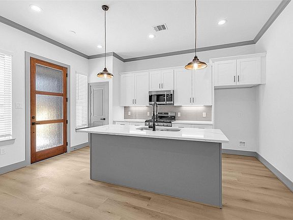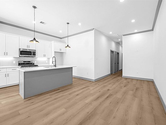 Experience contemporary living in this newly constructed duplex, featuring a 3 bedrooms and 2 bathrooms unit. This residence showcases a stunning kitchen, complete with a REFRIGERATOR a welcoming eat-in island and a convenient pantry for extra storage. Modern finishes in the kitchen create a sleek, stylish atmosphere. The luxurious primary ensuite bath includes exquisite finishes and a spacious walk-in shower with a custom bench for added comfort. Recessed lighting throughout enhances the aesthetic and provides a bright, inviting space. Outdoors, each unit offers a fenced yard for privacy and secure outdoor enjoyment. A double-wide driveway ensures ample parking, adding to the convenience of this thoughtfully designed home. With attention to detail and modern amenities, this new construction unit offers the perfect blend of comfort and sophistication.