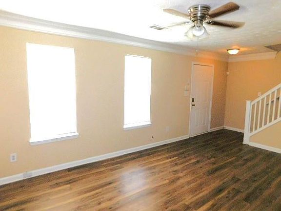 Enter this home into a living room with ceiling fan and fireplace that leads to the half bath and open dining room with French door access to the rear deck. The kitchen has Oak cabinets, Granite counters/breakfast bar, refrigerator, range hood, gas stove, and dishwasher. Upper level features a hall with the laundry closet with washer/dryer hook-ups, two spare bedrooms, full hall bath with tub/shower combination. Master bedroom has trey ceiling and ceiling fan. Master bath has single vanity with tub/shower combination. All new luxury vinyl planking throughout the home except for the carpeted stairway. Fresh interior paint. This home has an unfinished basement that allows for a lot of storage. Parking on parking pad. Location has easy access to I-20 and is close to Marta. Close proximity to Stonecrest Mall with lots of shopping and dining.
