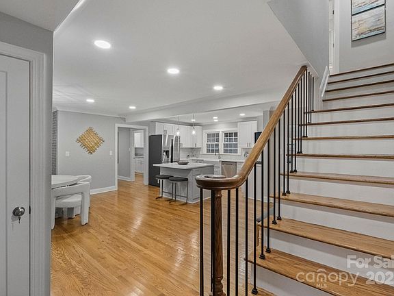 Originally built in 1967 and renovations fully completed in 2021, this Lansdowne home beautifully blends mid-century charm with modern luxury. Every detail has been refreshed to create a residence that feels timeless, functional, and move-in ready. The second-level primary suite is a true retreat, featuring double vanities, an oversized tile shower, and a separate soaking tub. On the main level, you’ll find an additional bedroom with its own ensuite bath—ideal for guests or multigenerational living. Hardwood floors extend throughout, complemented by updated designer lighting that brightens and elevates every room. The home offers two distinct living areas: a cozy den anchored by a fireplace and open to the kitchen, plus a spacious living room with direct access to the oversized two-car garage and wired workshop/storage area. This layout provides versatility for both everyday living and entertaining. A large first-floor laundry room with cabinetry and sink makes daily tasks effortless. Washer, dryer, and refrigerator remain. Upstairs are two additional bedrooms and a full bathroom. Outdoors, enjoy a wooden deck overlooking a private, partially fenced yard—perfect for entertaining or unwinding in peace. Lansdowne is known for its wide, tree-lined streets, mature landscaping, and exceptional location. Just minutes from SouthPark, Cotswold, and the Arboretum, residents enjoy proximity to dining, shopping, and amenities, all within the charm of an established neighborhood. This home represents a rare opportunity: a thoughtfully renovated residence with modern updates, versatile living spaces, and deep neighborhood roots in one of Charlotte’s most beloved communities