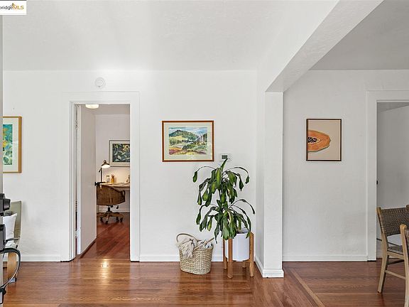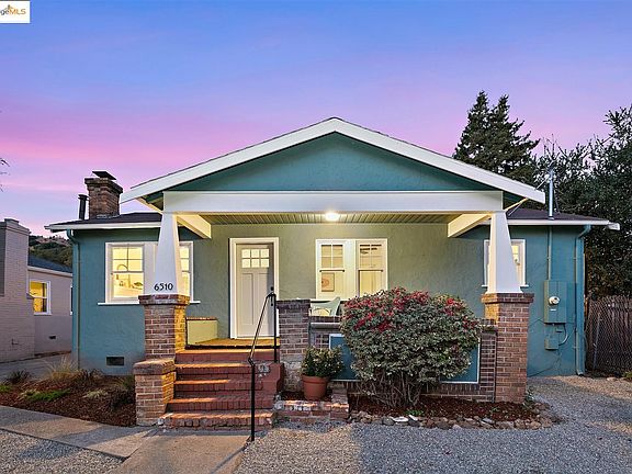 This charming Craftsman bungalow sits on a large, level lot in Millsmont overlooking the Oakland Hills. The west-facing front porch is the perfect spot to relax and catch the sunset, overlooking a freshly landscaped yard with a raised garden bed. Inside, the living and dining rooms feature beautiful hardwood floors and get lots of natural light. The kitchen has been refreshed with a new refrigerator and stove, modern cabinets, and tile flooring. The primary bedroom has brand-new carpet. There is also a separate laundry room with extra storage, just off the kitchen. The yard is fully fenced front and back, with a long driveway leading to a detached garage with a new roll-up door. Out back, you’ll find a sunny, newly landscaped patio made of brick and concrete. The grassy yard is lined with mature plants, and there's a detached bonus structure with tall ceilings, a skylight, and new flooring—perfect for an art studio or workout space. Sewer lateral is compliant, and the home includes upgraded 200-amp electrical service. You're just minutes from Hwy 580 and 13, Northeastern University, the Oakland Zoo, and Sequoyah Country Club. A great starter home with room to grow, this Millsmont gem is ready for its next chapter.
