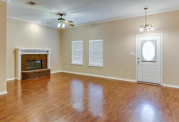 Lovely home & very well maintained. Entry boasts an open floor plan, crown molding, intricate wood work, & large living room with a fireplace. Kitchen features a breakfast bar - LOTS OF CABINET SPACE - beautiful tile. Kitchen leads to breakfast nook. Ceiling fans in every room. LARGE master suite, dual sink vanity with a garden tub and separate shower. Lots of backyard space w an 8x12 storage building. Wonderful home & perfect for a family!