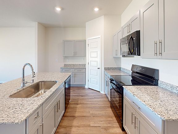 This new single-story home combines modern comfort and functionality. Three secondary bedrooms share a bathroom along the front hallway, while the owner's suite is ideally tucked away in the back with its own private bathroom and walk-in closet. At the heart of the home is the open living area, which showcases a kitchen with a center island, a dining area and a welcoming living room with patio access.