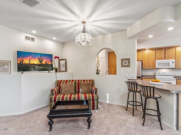 Great Tempe home in a highly desirable neighborhood! Homes in this gated community seldom come on the market. Architecturally unique interior, beautifully bright & spacious. TWO primary suites, each with partially renovated, light-filled bathroom. High ceilings & many large windows help create a bright & open feel to the home. Recent updates include: New carpet & pad throughout, (2)New AC units, dishwasher, and freshly painted kitchen, dining & hallways all done in 2024! The open kitchen offers ample storage, large pantry & solid maple cabinets. the community's large pool/hot tub. Located near the US 60, Loop 101, and ASU. Close to Trader Joe's, Changing Hands Bookstore, parks, golf, many great restaurants, and entertainment.