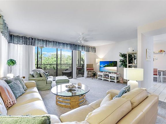 Welcome to Valencia at Pelican Bay, one of Naples most desirable resort-style communities. This oversized end-unit residence features 2 bedrooms plus a den with a sleeper sofa and 2 full bathrooms. Light-filled and comfortable, it offers a relaxed and inviting atmosphere with three screened lanais for enjoying Floridas breezes. A brand-new TV will soon be added to the den, creating an additional spot for lounging or accommodating guests. Just steps away, residents can enjoy the sparkling community pool, while Pelican Bays world-class amenities include private beach access, tennis, a staffed fitness center, and more. Ideally located close to Waterside Shops, Mercato, and a full-service shopping center.