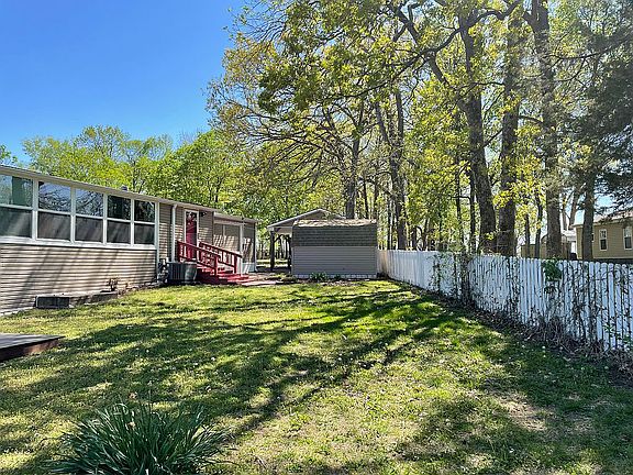 Check out this spacious, newly renovated retirement home located on beautiful Grand Lake near Cowskin Bridge. This home is 2032 sq ft and is perfect for retirement and for entertaining. It has a large living area open to the dining and kitchen. The kitchen has granite counter tops. The sun room is spacious with a gorgeous view and another eating area perfect for guests. The split-level deck is 22' x 30' and wonderful for enjoying the stunning view. There are two bedrooms with two closets each, two bathrooms, a laundry area and an office/plant area. This home is located in Cowskin Retirement Village for 55+ (near Grand Lake Baptist Campground). There is a monthly land lease which includes the water bill and yard maintenance. There is also an area provided to store your boat and RV. A meeting room can be scheduled for your use at no charge. Both trash service and disposal for larger items are available on location. Using Highway 10, this home is approximately 10 minutes from downtown Grove near many restaurants and activities. It is located across the bridge from one of the local casinos, boat gasoline and lake access for fishermen. It's close to the convergence of Spring and Elk river making excellent fishing! This home was built in 1988 with 2" x 6" outside studs, 3/4" flooring and 1/2" roof decking. The shingles were replaced in 2020 and the vinyl siding was replaced in 2022. Most of the interior was updated in 2017. The master bath and bedroom were completely remodeled in 2022. New A/C summer of 2022. If you have questions or would like to see, call 918.253.7235.