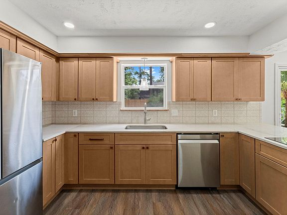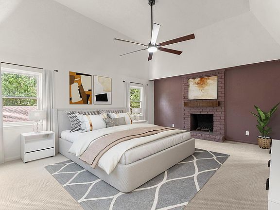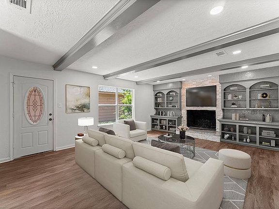 Welcome to this beautifully updated 4-bedroom, 2.5-bathroom home that blends charm and comfort with modern updates throughout. Nestled among mature trees with lush landscaping, this brick exterior home boasts incredible curb appeal and inviting outdoor spaces. Inside, the spacious living room features stunning exposed wood beams, a cozy fireplace, and built-in cabinets—creating the perfect gathering space. The updated kitchen offers modern finishes and convenient glass doors that open to the backyard, making entertaining a breeze. Retreat to the private primary suite with its own fireplace, ensuite bathroom, and direct access to the balcony. Step outside to your personal oasis—complete with an in-ground pool and a fenced yard ideal for relaxing or entertaining. Enjoy your morning coffee on the cozy side porch or unwind with a book on the peaceful balcony. This home combines thoughtful updates with timeless character in a serene setting—don’t miss the opportunity to make it yours!