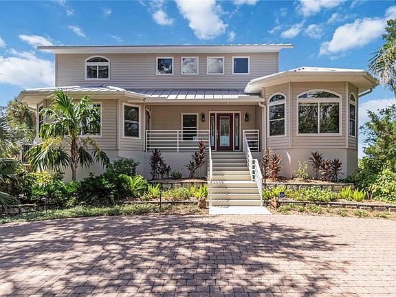 This exceptional waterfront haven offers an extraordinary blend of luxury living and natural beauty on over 1.3 acres of pristine bayfront property. The thoughtfully renovated 3-bedroom, 2-bathroom home spans 3,306 square feet and showcases stunning polished Egyptian limestone floors complemented by brushed oak wood throughout. The heart of this residence features a beautifully appointed kitchen with an abundance of upgraded cabinetry topped with granite countertops, perfect for both casual family meals and entertaining guests. Natural light floods every room through new hurricane impact windows and sliders, creating an bright and welcoming atmosphere. Recent improvements include a 2025 standing seam metal roof, 2022 water heater with advanced leak protection, 2020 dual Trane air conditioning units with ultraviolet lights and air scrubber filters, both bathroom remodels, impact windows and sliders, interior lighting and landscape lighting, 2019 Garage doors, new gates, alarm with video surveillance. The home offers practical conveniences including two separate laundry areas and an elevator shaft connecting the garage to the upper level. The impressive 3,100-square-foot garage accommodates four vehicles while providing additional space for a workshop and fitness area. A recreational vehicle pad with electrical and water connections adds further versatility to this unique property. Step outside to discover your private dock where incredible sunsets paint the sky nightly, while an outdoor shower provides convenience after water activities like kayaking or boating. The mature landscaping features live oaks, royal palms, southern red cedars, plus fruit trees including mango, macadamia, and lychee varieties. Wildlife enthusiasts will appreciate frequent visits from everything from dolphins to eagles, while nearby Palm View Marina and Terra Ceia Preserve State Park offer additional recreational opportunities. This truly distinctive property perfectly balances tranquil waterfront living with convenient access to metropolitan amenities.