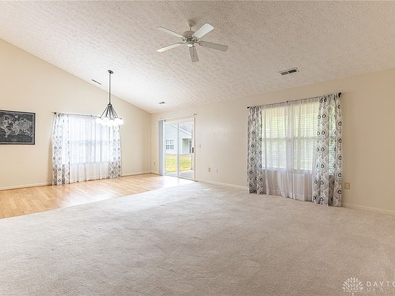 Welcome home to this single story 2 bedroom, 2 bath attached home. You will be immediately impressed with the open floor plan featuring plenty of natural light, cathedral ceilings, ceiling fan and dining area great for entertaining family and friends. The primary bedroom has a spacious full bath with double sinks and a large walk-in closet. Eat-in Kitchen with ample counter space and storage cabinets. Large laundry room. Covered backyard patio great for hosting summer barbecues with friends or just enjoying your morning coffee listening to the sounds of birds chirping. Low annual HOA. Huber Heights Schools, close to WPAFB, 70 & shopping.