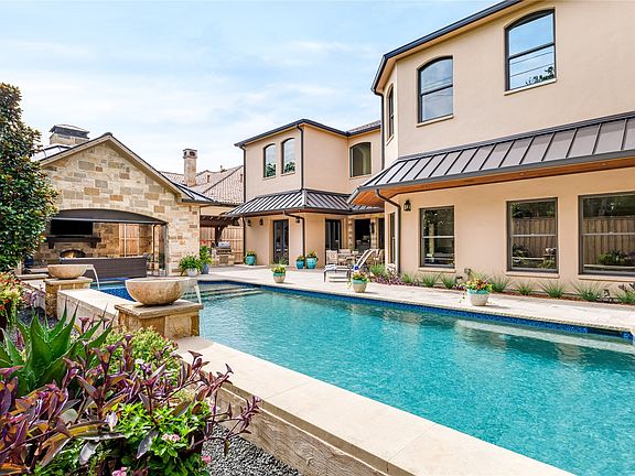 Modern luxury and beautifully updated, with timeless stone facade and move in ready, in one of the best blocks in Preston Hollow. With the front exterior that was completely transformed by Rosewood Homes in 2020, the front exterior radiates soft contemporary charm, setting the tone for the thoughtful improvements throughout. Inside, a spacious and light-filled foyer opens to an oversized formal dining room. The two story great room offers both privacy and openness, seamlessly connecting to a gourmet kitchen complete with breakfast area, a butlers pantry, and a large walk in pantry perfect for storing food, appliances, and cookware. Entertain effortlessly with triple French doors that lead to a true backyard oasis that was completed in 2017: an expansive patio, a 40 foot heated pool with tanning ledge, and a covered cabana featuring retractable screens, a wood burning fireplace, TV, and a stone outdoor kitchen with grill and warming drawer, breakfast station with side burners, refrigerator, and ample storage.The luxurious downstairs primary suite enjoys views of the backyard, a generous sitting area, and a spa-inspired bath featuring dual vanities, soaking tub, separate shower, and a large walk-in closet. Also on the main floor are 2 dedicated offices, one with storage or safe room under the stairs. Upstairs, you’ll find four bedrooms, 3.5 baths, a media-game room, and an open game area with a balcony overlooking the great room. Every inch of this home reflects meticulous updates and care, including two recently replaced HVAC systems, 2018 roof replacement, new and refinished hardwood flooring throughout the main level, professional landscaping with drainage and irrigation systems, replaced tankless hot water heaters, upgraded LED lighting and designer chandeliers, interior and exterior security systems and whole house sound system. The 3-car tandem garage features epoxy flooring and LED lighting, with room for a lift! An excellent value in this desirable location.
