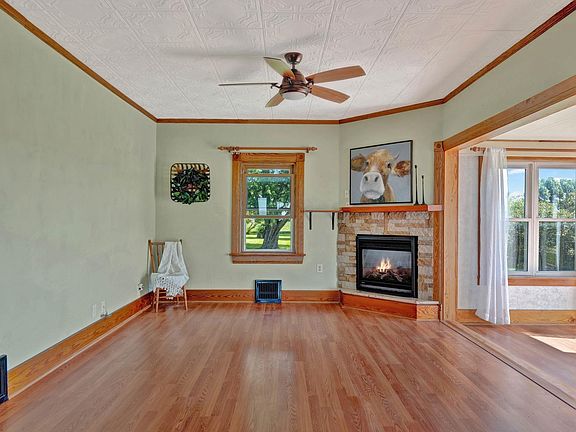 Tranquility awaits at this unique property. This 3 bedroom, 2 bath acreage has everything you need to enjoy a slower pace in life. Pull into your oversized garage and take a load off in the generous breezeway and step into your charming farmhouse, complete with an enclosed porch and oversized deck to watch the sunrise. On the brisk days, curl up next to your fireplace and enjoy the peacefulness of this home. The oversized living room combines with a dining area right off the kitchen. Work from home in a spacious office with a view. Outside there is plenty of land for all the country hobbies, and a spectacular shop for endless opportunities or extra storage. Don't miss your chance to check out this rare listing that beams with natural beautiful surroundings.