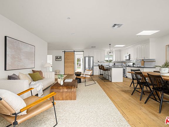 Welcome to this beautifully renovated 3-bedroom, 2-bathroom home located in the highly sought-after Kentwood pocket of Westchester. With an ideal open-concept layout, this thoughtfully designed home blends the living room, kitchen, and dining areas into one seamless and inviting space that truly lives large. Perfectly placed windows and skylights flood the home with natural light throughout the day, creating a warm and uplifting atmosphere in every room. The two guest bedrooms are generously sized, while the serene primary suite features vaulted ceilings and elegant french doors that lead to the backyard, adding a refined sense of space and tranquility. The backyard is a true retreat, featuring a spacious grassy area for kids and pets to play, mature trees that add privacy and charm, and a beautifully hardscaped patio with an outdoor kitchen perfect for dining al fresco and entertaining under the stars. The finished garage offers valuable bonus space ideal as a playroom, home office, man cave, or future ADU. Set on a quiet, neighborly street with limited through traffic, this home offers the best of the Westchester lifestyle. Enjoy being just 10 minutes from the beach, walking distance to local schools, with easy access to Playa Vista, the South Bay, and all of West L.A. Don't miss this exceptional opportunity to own a bright, airy, and move-in-ready home in one of Westchester's most desirable neighborhoods!