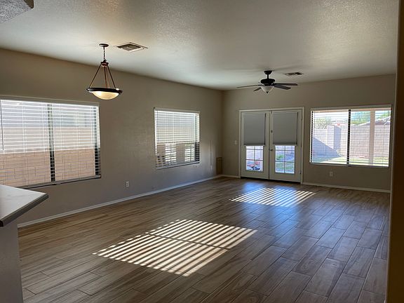 LOCATION! You are going to love this 4 bed 2 bath rental on a quiet cul-de-sac lot, surrounded by mountain views and natural desert! Open floor plan, lots of natural light, eat-in kitchen with breakfast bar, stainless appliances, luxury wood tile flooring, ceiling fans, French doors and so much more! All good-sized bedrooms and closets, master with large walk-in and garden tub with separate shower and dual sinks. Enjoy your evenings out back under an oversized covered patio with a grassy area and no fuss maintenance. Close to everything Peoria and Phx has to offer!