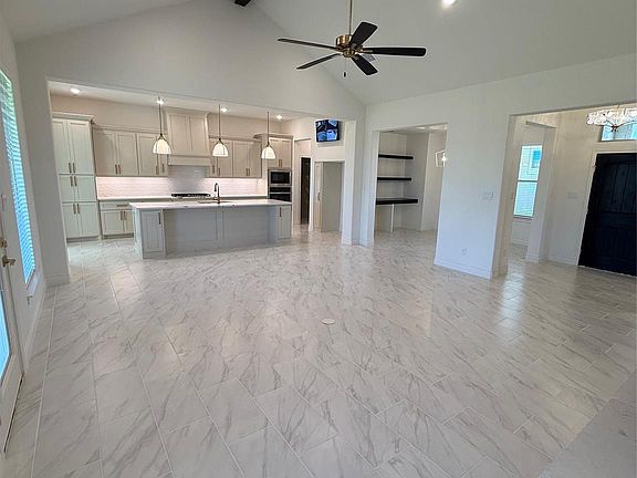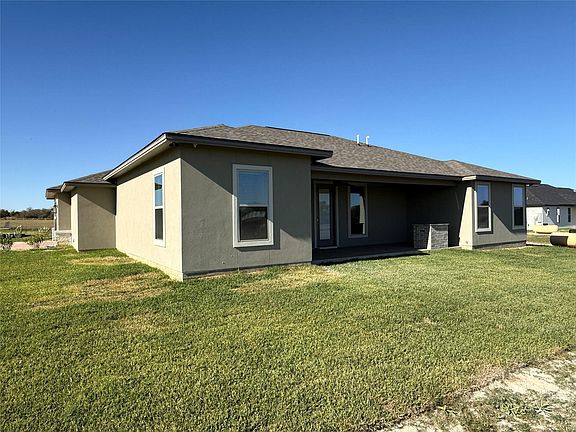 Welcome to Los Cazadores. Country retreats only 7 miles from Hwy 6. This 2148sf home on over an acre will make your dreams come true. Walk in to a beautiful custom entry that leads to a very high cathedral ceiling in the living room. Adorned with a remote floor to ceiling fire place, wood beam, extra large windows and open to a gorgeous kitchen. You will love cooking and entertaining in the spacious kitchen featuring a large, eat at, island. Love some coffee from your built in coffee bar (or us as a dry bar). Enjoy a designated office and formal dining room. The primary has a huge shower and large closet with built in drawers and shelves. The back patio is massive and will have a very nice grill installed. This is living large!