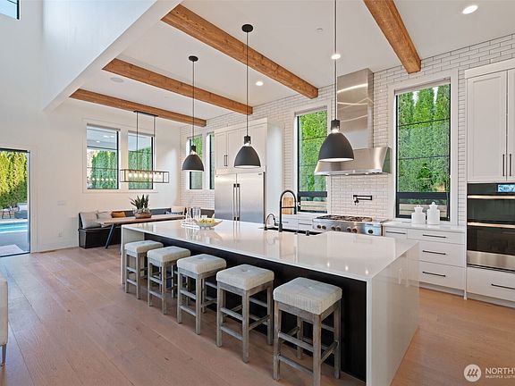 - Description: walk-in pantry, barn door, island, eating area, professional grade appliances