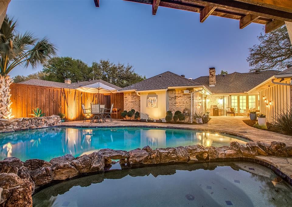Wonderful single story with a resort style pool located on a quiet street a block from neighborhood park in sought after RISD and Brentfield Elementary. A light filled entry opens to a formal dining room and second living area-study that could easily be a 4th bedroom. The inviting main living area welcomes you with beautiful wood floors, white walls, vaulted ceiling and views of the backyard oasis. Adjacent is the kitchen with granite counters, 5 burner gas cook top, double ovens, stainless appliances and breakfast nook. Spacious master suite opens to the covered patio and a beautifully renovated bathroom including a fabulous shower with oversized frameless glass enclosure, sleek tile floors, separate granite vanities and walk-in closets. The exotic backyard with sparkling pool, palm trees and pergola are the perfect escape for those long hot Texas summers. Two additional bedrooms and 1 baths complete this beauty. 2022-04-18