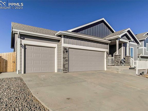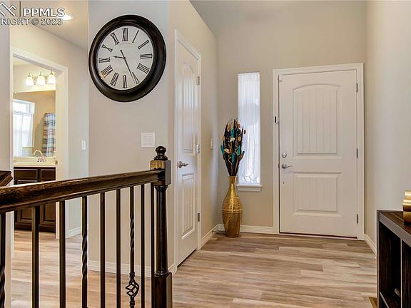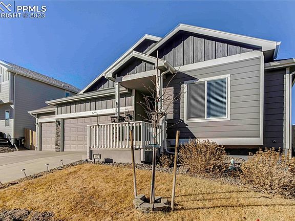 WELCOME HOME! This gorgeous nearly new home boasts 5 bedrooms, 3 bathrooms, and a 3-car garage with an abundance of space for entertaining and a flowing floor plan. Finished in 2022, this fabulous home has numerous custom upgrades and is ideally located just minutes from hiking, shopping, Amazon, Peterson, and Fort Carson. Entering in from the quiet street and landscaped front yard, you are greeted w/stunning new luxury vinyl wood floors that grace the main areas. Vaulted/beamed ceilings and large windows allow for lots of natural light throughout the home. Create memories in your eat-in kitchen with plenty of cabinet/storage space, and nearly-new SS appliances. Unwind in your living room adjoining your dining area for that extra cozy feel with a walk-out to the backyard. Escape your day-to-day in your tranquil master suite complete with en-suite master bath with double vanity, soaking tub, and walk-in closet. Two additional bedrooms and a full bath are also conveniently situated on the upper level. Down the stairs, you’ll find a sizable second living room with a nook perfect for a workout space or home office. The basement was thoughtfully finished with two additional bedrooms, a full bath, spandril storage, and utility space with plenty of additional storage space. Enjoy entertaining in your fully fenced backyard with expanded patio, large fresh grass area w/double auto sprinkler system, and fantastic extended walkway. Additional amenities: AC unit, fresh landscaping, whole-house humidifier, 42” upgraded cabinets, quartz countertops, nearly new stainless-steel appliances, window blinds, sump pit w/sump pump, wet bar pre-plumbing, radon mitigation system, ceiling fans, upgraded interior doors and fixtures, fiber cement siding, stone accents, freshly poured walkway, builder’s structural warranty, and so much more! Can you imagine yourself living here? This delightful home will go FAST, and you won't want to miss out on this incredible opportunity!