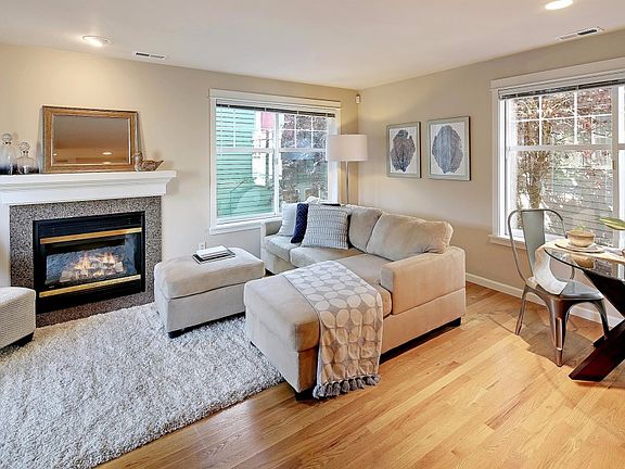 Welcome to this charming, craftsman-style, 3 bed/2.5 bath town home! With a freshly painted interior, this move-in-ready home also features a spacious floor-plan that is flooded with light and style. Beautiful hardwoods, gas fireplace, balcony, cherry wood cabinets, granite counters & tile backsplash add sophistication to the inviting 2nd floor spaces. Vaulted ceilings in the upstairs bedrooms, with the laundry & utility room close by. Private 1st floor bedroom enjoys its own full bath. Front-facing home with attached 1-car garage, plus rare 2nd parking spot in driveway & fenced back yard with large deck. This is a feature-packed home in the heart of Ravenna; great schools, no HOA dues! Minutes to the park, U. Village, restaurants & buses.