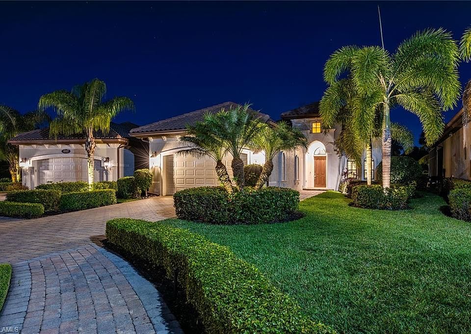 Presenting an exquisite Tivoli III residence on an oversized private cul-de-sac lot in the luxurious guard-gated Lakoya neighborhood at Lely Resort. Boasting three bedrooms and a den, three full baths, this home offers spacious living. The private expansive outdoor area provides the ideal space for relaxation or entertaining, featuring an extended deck and cage, app-enabled gas heated pool with waterfall with fully integrated elevated spa, and custom vented outdoor kitchen, an entertainer's delight. The interior showcases an open flowing floor plan with coffered ceilings, a gourmet gas kitchen, new wood-look tile plank flooring in bedrooms and den, plantation shutters, high-end kitchen and baths, new washer and dryer, new dishwasher, high definition security cameras with alarm system which are app-enabled and speaker system, impact-resistant windows and doors, new pool pump, designer fans and stylish lighting throughout. Paradise awaits in this meticulously maintained and designed home, complete with lush landscaping, exterior landscape lighting and an oversized two-car garage. Included is desired membership to the Players Club and Spa, which offers a variety of dining options, social, sporting and exercising activities. Lely Resort is also home to three championship golf courses. Lakoya is a natural gas community.