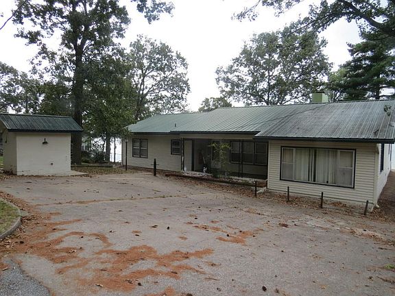 Wide open Lakefront with 100' of water. 307x100' lot that is gated with a detached garage/shop and greenhouse and shed. 3 bedroom 2 bath with 2 living areas. WB fireplace and open large Greatroom and kitchen. Picture windows see through to lake. All paved roads and concrete sidewalks and steps allover. Has great potential with great bones!! Just needs someone to make it their own.