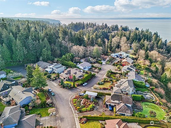 Don't miss your chance to own in the coveted Southview Hills w/ a Peek-A-Boo Sound VIEW! Live where vibrant neighborhood spirit & yearly progressive dinner create connections that last a lifetime! Nestled on a meticulously landscaped lot, rain garden & artistic touches harmonize w/mature trees & shrubs, showcasing years of thoughtful care. Inside freshly painted walls, a timeless tile roof, & cathedral ceilings adorned w/wood beam accents. An abundance of windows invite soft natural light, creating a warm, open-concept flow. The living, dining, cozy sitting area w/marble gas FP & kitchen connects seamlessly to the picturesque backyard. Parquet flooring stairs lead up to primary ensuite featuring cedar accents W.I.C & 3+room & 3+W.I.C.