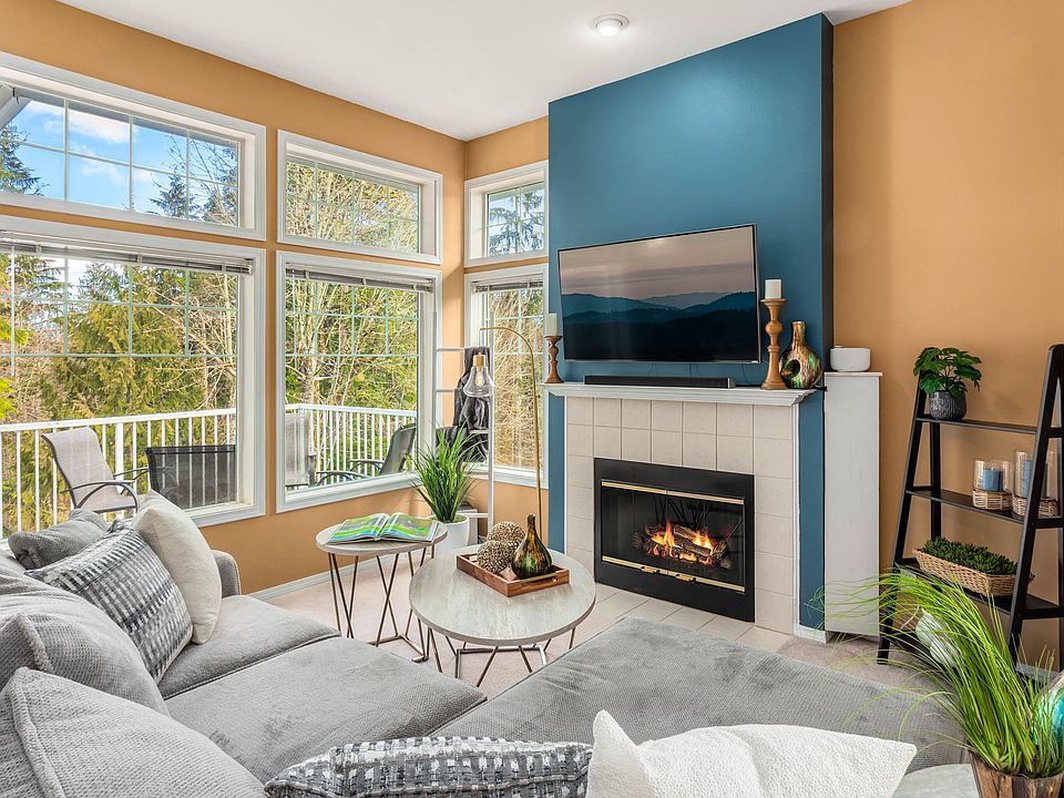 Updated Arbors at the Highlands townhome backed to the greenbelt and close to shopping, restaurants, parks, and minutes to I5 and hwy 9. Main floor entry followed by stairs to lead you to your warm and inviting living room with tall ceilings, wall of windows, and a wood burning fireplace. Updated kitchen with glass tile backsplash, stainless steel appliances, pantry, eat up bar, with ample storage and counter space. Spacious primary suite with walk-in closet, dual sinks, and a soaking tub. French doors into the guest bedroom. Relax on your large deck and take in the peaceful surroundings. Trail entry nearby, great schools, pets welcome, and no rental cap. Parking is easy with individual garage and ample guest parking.