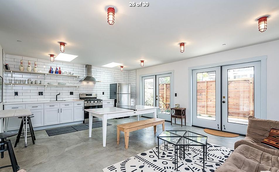 A shed, and small office nook with natural light, skylights in bathroom, concrete floors, quiet and safe. The guest house is tucked away behind the front house with a completely private entrance. It's like a secret garden. We are dog friendly, One dog only, no super barky dogs please. Rented unfurnished. Photos with furniture are just for reference and from when we used to air bnb this space. Security deposit is double the rental amount, and can be used towards last months rent. Utilities are split with front house, we have a Sense monitor on the water and power reader that tells what percentage each house is using. We haven't had any issues with splitting utilities.