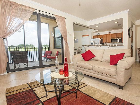 Gorgeous 2 bedroom 2 bath condo on 2nd floor in elevator building with views of golf course and lake.This welcoming and cozy fully furnished condo is ready to be your home away from home! With a spacious master bedroom with a king bed, a queen bed in the 2nd bedroom, you will sleep at ease knowing you are exactly where you need to be! The large sectional couch will allow your family to gather and spend some time lounging in the living room. Spend time in the lanai overlooking the calm waters of the lake, enjoying the fresh air! This home includes a lovely dining area near the fully, stainless steel equipped kitchen with granite countertops and a washer / dryer for your convenience. With nothing of the essentials missing, you have everything you need to be right at home!