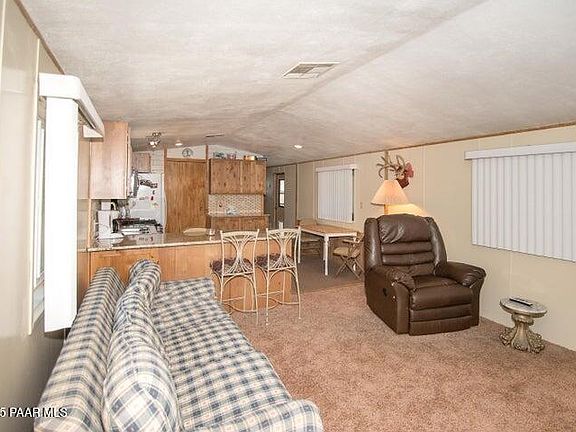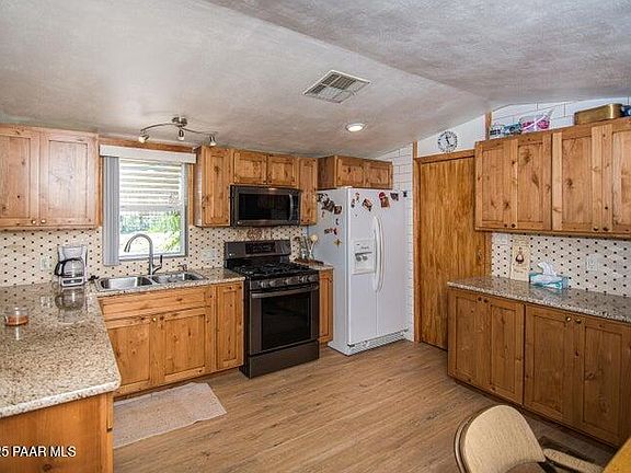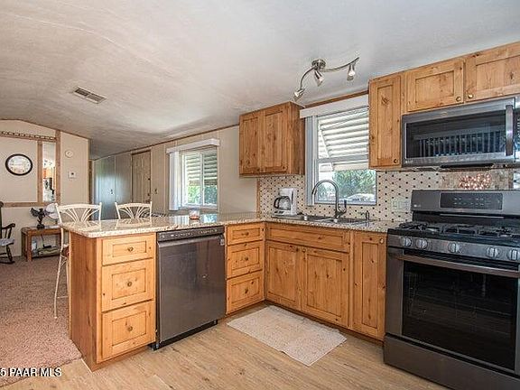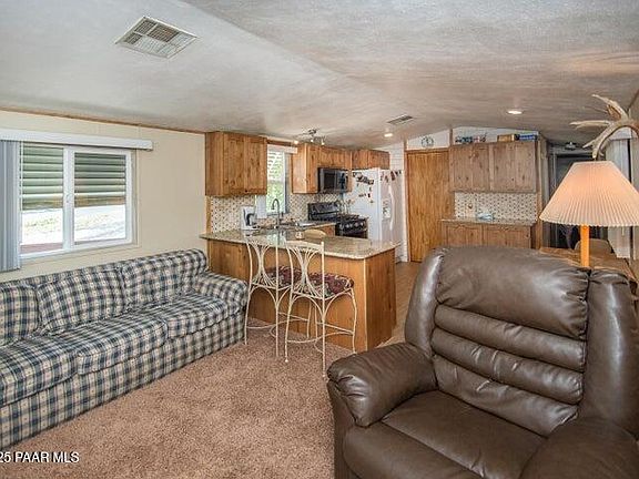 Lovely singlewide manufactured home built in 1987. Offers 3 bedrooms, 2 bathrooms, and a practical split bedroom plan. The spacious kitchen features attractive granite countertops and a generous pantry/laundry room. Conveniently located near an elementary school with quick access to Hwy 89A for an easy commute to Prescott. Recent updates include a new water heater (2025) and a brand-new roof to be installed before close of escrow. Exterior highlights include a functional U-drive for simple parking and turnaround, a sturdy tough shed on a concrete foundation, a small, attached workshop.