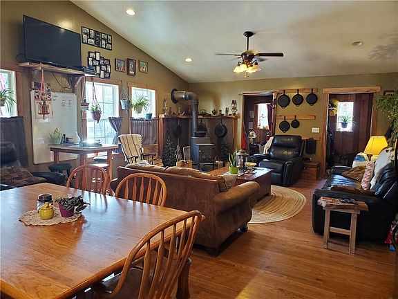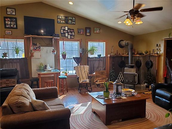 This amazing farmstead is perfectly situated on almost 15 AC ,complete w/barn, workshop, goat shed, fenced pasture, woods, waterfall & spring fed POND! One level living w/hardwood floors, open floor plan, wood stove & covered deck. Relax & take in the beauty of nature. Woodstove for alternate warmth or cooking. Current owners harvest sap from over 100 maple trees to make their own maple syrup - & there are about 100 more trees to tap! Wide trails cut through the woods for ATVs & tractors. 2 big bedrooms (large walk in closet in the master!). While not currently zoned as a tourist rental, this property DOES meet all the distance setbacks to be zoned as such! Don't miss out on this one!