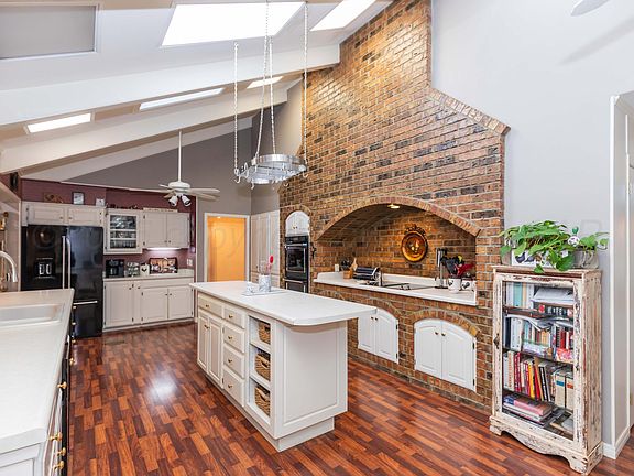 Elegant fireplacePrivate patio with pergolaEnclosed sun porchOffice with french doorsFormal diningCorner lotNice island