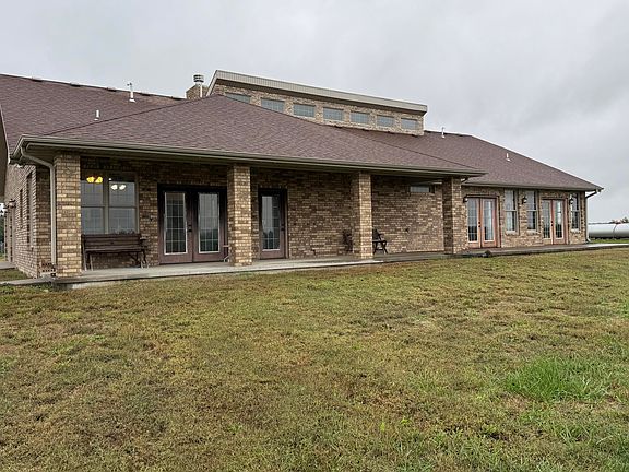 RARE FIND! This custom 3,256 sq.ft. all-brick ranch home, built in 2016, offers peacefulness and privacy on 12.5+/- unrestricted acres. The property is mostly open, perimeter fenced, and includes a pond--perfect for your own mini-farm or simply enjoying nature and quiet country living. The yard is chain-link fenced, ideal for kids or pets, and features thornless blackberries thoughtfully planted in each corner.Inside, the 3-bedroom, 21/2-bath home is filled with natural light from large windows and enhanced by high ceilings, solid wood interior doors, rich wood trim, and a comfortable mix of tile and carpet flooring. The spacious living room centers around a beautiful brick fireplace and offers plenty of room for multiple seating areas or a formal dining option, with four convenient floor outlets allowing flexible furniture placement and easy access for lamps or decor.Three sets of French doors provide multiple entry points, making it simple to move furniture and creating effortless indoor-outdoor flow when entertaining or taking in the views.The bright eat-in kitchen boasts abundant cabinetry, a propane stove/oven plus electric wall oven, microwave, dishwasher, and a central island with bar seating. An island outlet adds convenience for small appliances, meal prep, or device charging--perfect for everyday use or gatherings. There's also ample space for a full dining table.The inviting primary suite includes a walk-in closet that doubles as a hidden concrete storm shelter, plus an ensuite bath with double vanity, tub/shower combo, and separate step-in shower. Two additional oversized bedrooms feature excellent closets and share a full hall bath. A spacious laundry room with half bath completes the interior.An attached two-car garage, floored attic, and 14' x 28' storage shed add everyday practicality. With a Generac whole-home generator and 1,000-gallon propane tank, this home delivers true move-in-ready peace of mind.