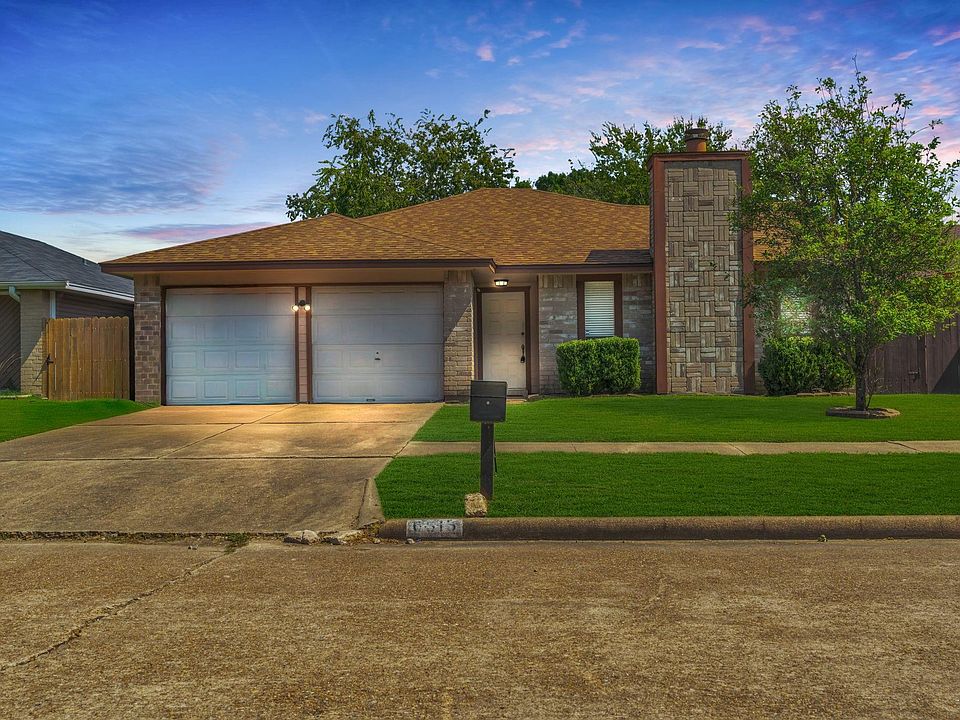 Just Listed! This charming single-story brick home sits on a fully fenced lot and comes complete with all appliances. Featuring 3 bedrooms, 2 full bathrooms, and a double-car garage, the home offers easy living with no stairs. The open-concept living and dining area is highlighted by a stunning floor-to-ceiling brick fireplace and vaulted ceilings, creating a warm and spacious atmosphere. The kitchen includes a gas connection, perfect for culinary enthusiasts.