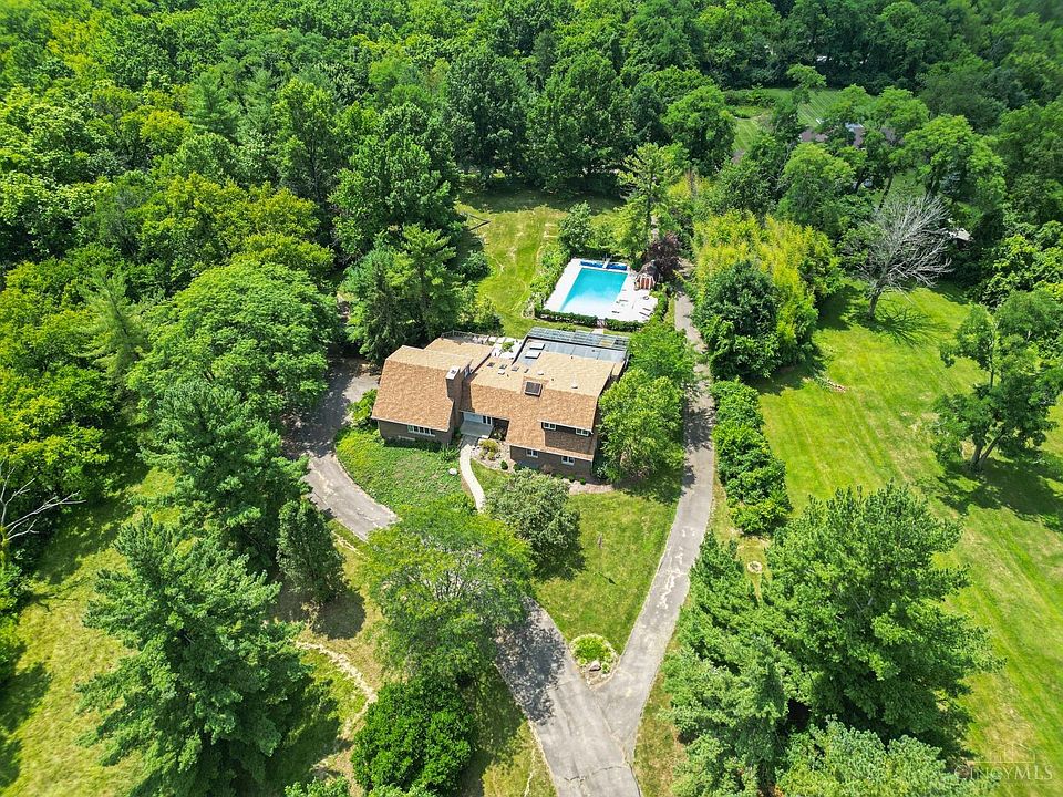 Discover this stunning contemporary retreat on a serene 6-acre parcel. Boasting over 6,000 sq. ft., 6 beds, and 5.5 baths, this home offers custom-built bookshelves, vaulted ceilings, a wood burning fireplace, a work-at-home loft, bonus rooms, a spacious eat-in kitchen with wood cabinets, granite countertops, picturesque views, and so much more. Enjoy outdoor living with a heated inground pool, hot tub, and waterfall feature, while being surrounded by nature. The lower level features a large finished basement for entertaining, plus hobby rooms including a tool room, photography studio, and gun room with its own underground shooting range. Relax in the 4-season solarium with a hot tub and sauna. Ample storage with a 2-car garage and a 30 x 70 pole barn. Embrace the ultimate blend of space, privacy, and convenience only 20 minutes to downtown Cincinnati. This is truly a one-of-a-kind residence. Schedule your tour today!