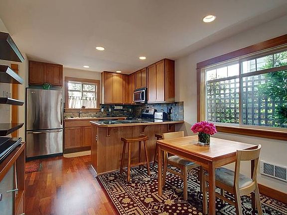 Better than new townhome in an ideal location, walk to numerous amenities like Top Pot Doughnuts, Starbucks, Sunflower Bakery, Library and parks and within 2 miles of UW campus and UVillage. Features include granite kitchen w/stainless appliances, gas fireplace, powder room, Brazilian hardwood floors, full size W/D. Two bedrooms and a full bath, covered off-street parking and private fenced in patio. Super location.