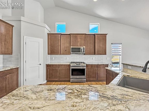 Nestled on a prime corner lot in the coveted Wolf Ranch neighborhood, this semi-custom, ranch-style home blends luxury, comfort, and functionality. Offering 3 bedrooms, 3 full baths, and a spacious 3-car garage, this property is perfect for those who appreciate the finer things in life. Step into the heart of the home—a gourmet kitchen complete with a pantry, soft close cabinets and drawers, and state-of-the-art appliances—seamlessly flowing into an open-concept living area ideal for entertaining. Rich wood floors add warmth and elegance throughout. For the work-from-home professional, a dedicated office space with its own 20-amp circuit ensures uninterrupted productivity. The main level laundry/mud room features a convenient pass-through laundry chute from the primary bedroom's walk-in closet, while the washing machine includes a separate small load wash basin for added versatility. Retreat to the luxurious primary suite, complete with a separate sitting area and a spa-like 5-piece bath featuring an oversized soaking tub. The basement offers a spacious family/game room with a full wet bar, two additional bedrooms (one with a walk-in closet), and a professionally designed theatre room with sound-insulated walls and a thoughtfully designed A/V closet. Attention to detail shines through with items like instant hot and motion-sensitive faucets in the kitchen and wet bar, Cat-6 wiring for high-speed internet in all rooms, a tankless water heater, and whole-house humidifier. The home is prewired for sconce lights in the theatre and pendant lights over the kitchen island. The back patio features a ready gas connection for grilling and the garage is set up with a dedicated outlet for your EV charger. Located in picturesque Wolf Ranch, residents have access to parks, walking trails, and serene Wolf Lake—all just minutes from shopping and dining. Don't miss this opportunity to own a piece of Colorado Springs' finest. Schedule your viewing today!