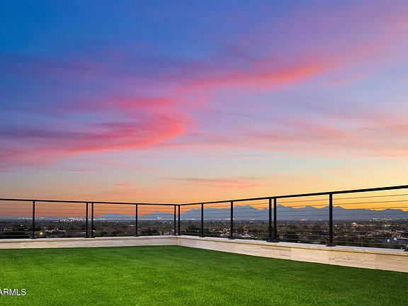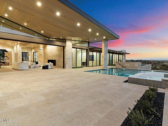This organic contemporary, GATED estate, perched on the east slope of Mummy Mountain in Arizona's wealthiest zip code, 85253, offers epic views & amenities. The 8,312 sqft livable MAIN HOUSE with NO INTERIOR STEPS, boasts a Large Primary Suite, 2 Huge Closets, Gym, & 2 Separate Offices, The split floorpan offers 3 Additional Guest Suites, each room with Panoramic Views of North Scottsdale, Pinnacle Peak, the McDowell Mountains, 4 Peaks, Mummy Mountain, the Superstition Mountains, and City Lights. Main spaces offer incredible natural light and over 4,000 sqft of outdoor patios, a dog run, & glass infinity edge pool, & firepit. The 1,224 GUEST HOUSE offers great flexibility with a full Kitchen and full Bathroom. The estate boasts 7 Garages, convenient location, a perfect vacation getaway