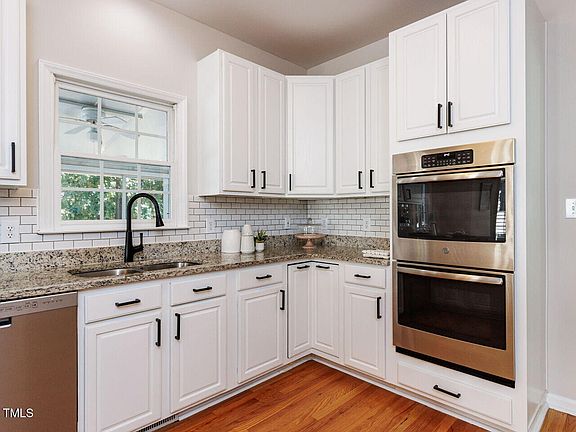 Welcome to your new home in the highly sought-after Dominion Park! The main level is filled with natural light and designed for effortless flow and everyday comfort. Step into a bright, airy foyer with soaring ceilings. The open living and dining areas offer flexibility for entertaining or casual gatherings, now enhanced by a stylish new barn door that provides easy access to the kitchen. The updated kitchen features white cabinets, granite countertops, a wall oven and microwave, stainless steel appliances, all seamlessly connected to a breakfast nook and a spacious family room with a cozy gas log fireplace. Enjoy outdoor living at its best with a large two-tier deck, a shady fenced backyard with a new storage shed (2024), and a three season sunroom, perfect for relaxing or entertaining year-round. Upstairs, a huge loft area offers flexible living space, while the spacious primary suite boasts vaulted ceilings, a private flex room ideal for yoga, a home office, nursery, or reading nook, and a stunningly updated ensuite bath. The primary bath includes two walk-in closets, dual vanities with quartz countertops, a soaking tub, and a tiled walk-in shower. Three additional generously sized bedrooms and an updated hall bath complete the second floor. This well-maintained home has seen thoughtful updates, including a new first-floor gas pack (2024) and a second-floor heat pump (2025). Front windows were replaced in 2025. Freshly painted interior and exterior trim and deck. The kitchen was refreshed with painted cabinets and hardware (2019), new granite countertops, and a subway tile backsplash (2023). Additional improvements include gutter guards (2020) and new fence gates (2019). Dominion Park offers fantastic amenities, including a community pool, park, and tennis courts, and is located just minutes from I-540, RTP, RDU, Brier Creek, top-rated schools, shopping, dining, and Umstead Park.
