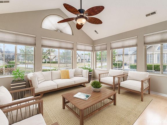 OPEN HOUSE SUNDAY, NOVEMBER 23rd, 1-3 PM! Welcome home to one of the most peaceful spots in The Villas at Charleston Lake — a very quiet, tucked-away community with walking paths, a clubhouse, fitness center, and a heated pool. This bright and open 2-bedroom, 2-bath ranch condo feels airy and inviting with vaulted ceilings, a cozy gas-log fireplace, and plenty of natural light.